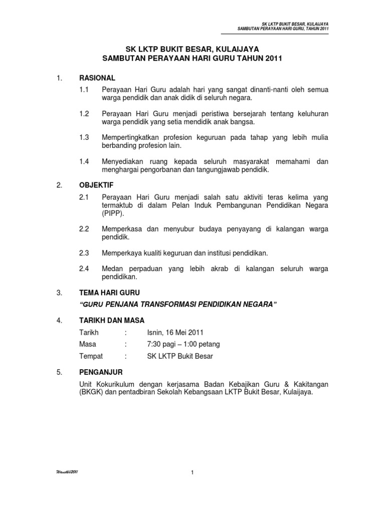 Teks perutusan hari guru tahun 2017 menteri pendidikan. Sehubungan itu, bagi menggambarkan pengiktirafan kepada jasa guru, pada 16 mei setiap tahun, kementerian pendidikan malaysia (kpm) akan menganjurkan sambutan hari guru dengan melengkapkan pelbagai program. Kertas kerja dan bahan minggu transisi 2020. Contoh kertas kerja rancangan perniagaan catering. Persembahan sempena sambutan hari guru smk jengka pusat 2019 guru, obor hemah menyinari pertiwi!!